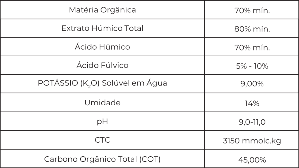 As substâncias húmicas agem como condicionadores do solo, biorreguladores e bioestimulantes para as plantas. Atuam na esfera química e promovem a formação de complexos organominerais, contribuindo para melhor armazenamento e disponibilidade de nutrientes no ambiente físico do solo, e favorecem a agregação e, consequentemente, a estabilidade dos agregados no solo.